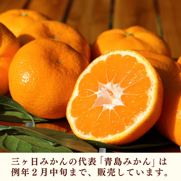 この度は、数あるオンラインショップの中から当店の「青島みかん」をご注文いただき、誠にありがとうございます。 お客様にご満足いただける品質のみかんをお届けできましたこと、非常に光栄でございます。 今シーズンの青島みかんの販売は終了しておりますが、時期によって様々な柑橘類をご用意しております。 また機会がございましたらぜひお試しください! 改めまして、この度はご来店を誠にありがとうございました。 またのご利用をスタッフ一同心よりお待ちしております。