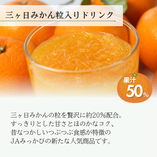 JAみっかび公式オンラインショップをご利用いただき、誠にありがとうございます。 この度は、みっかびジュースセレクト4種 をご注文いただき、ありがとうございます。 JAみっかびこだわりのジュース全4種類をすべてを飲み比べできるよくばりセットになっております。 飲み比べを楽しみながら、お気に入りのジュースを見つけていただけますと幸いです。 改めまして、当店をご利用いただき、誠にありがとうございました。 またのご利用をスタッフ一同、心よりお待ちしております。